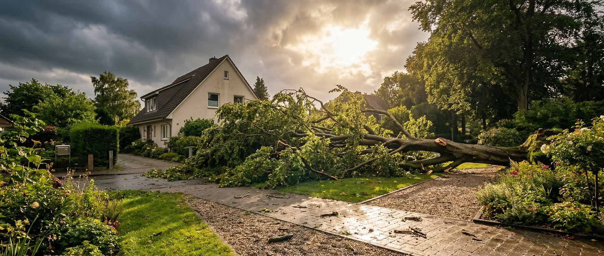 Bei Sturmschäden zählt jede Minute. Kontaktieren Sie uns jetzt – wir rücken schnellstmöglich aus und sichern Ihr Grundstück.